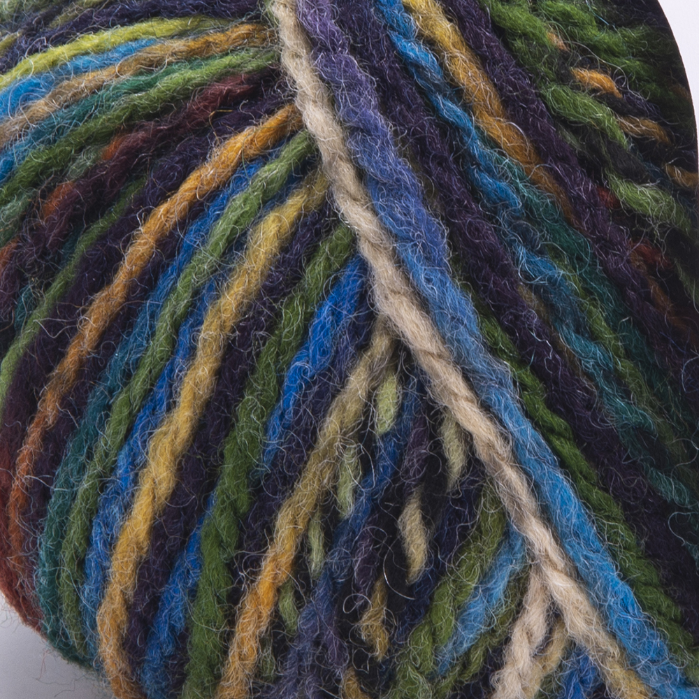 Włóczka gruba, skręcona z dwóch nitek, melanżowa, miękka i przyjemna w dotyku. Połączenie wełny i akrylu idealna na jesienno- zimowe robótki.