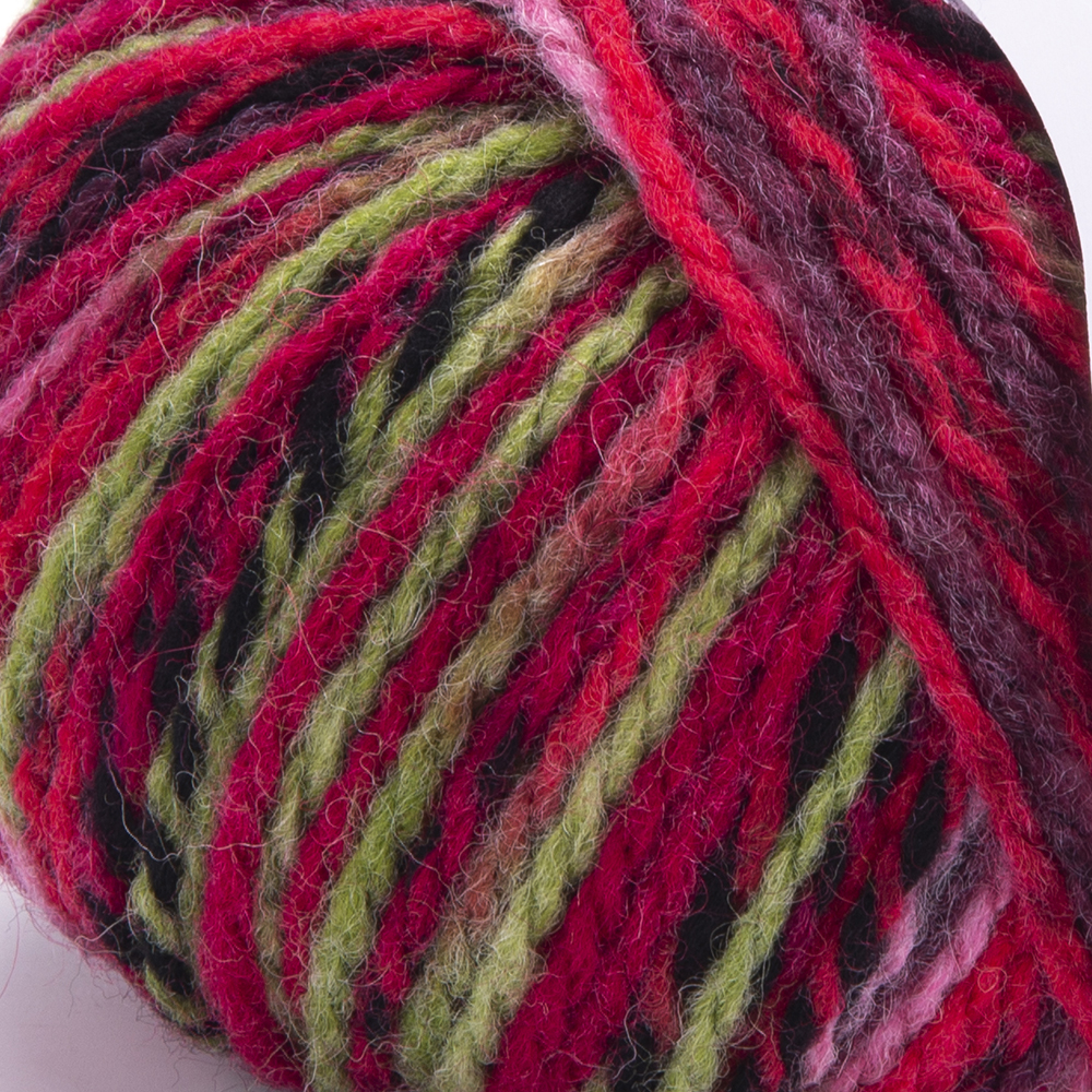 Włóczka gruba, skręcona z dwóch nitek, melanżowa, miękka i przyjemna w dotyku. Połączenie wełny i akrylu idealna na jesienno- zimowe robótki.